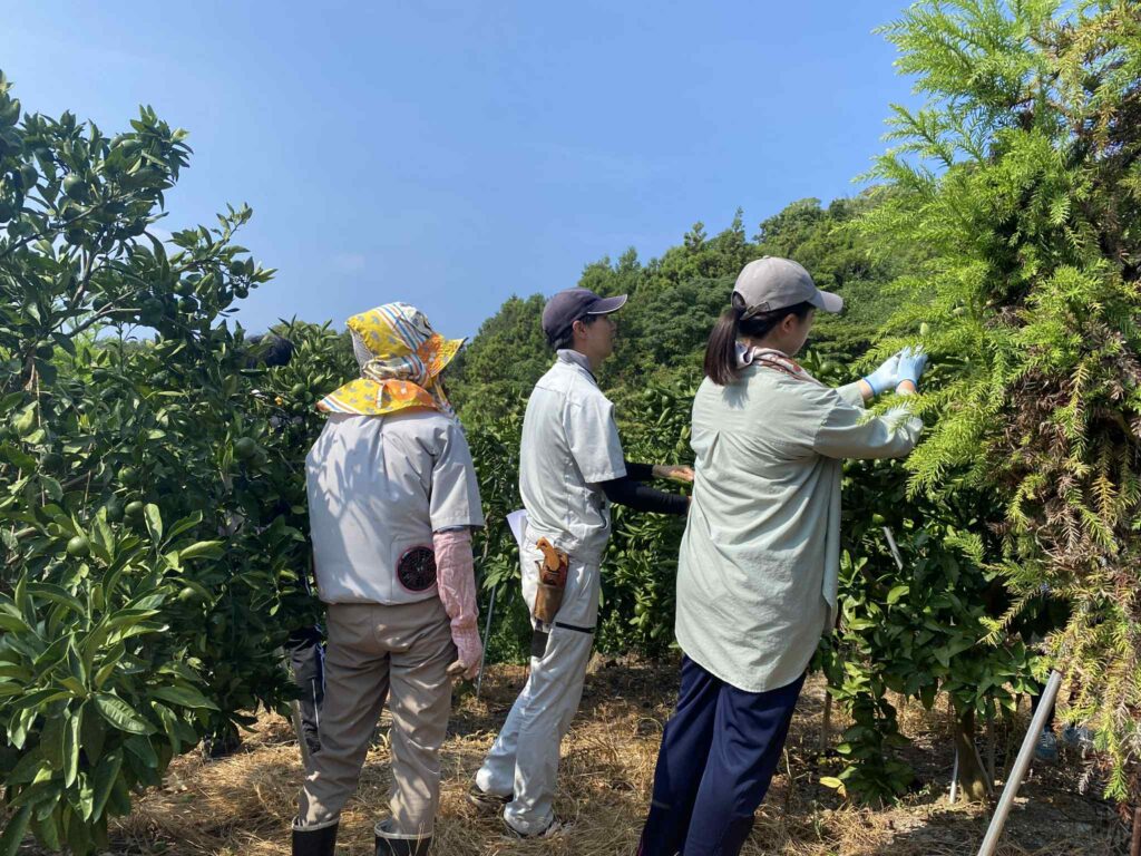 8月の終わり。当園のみかんジュースを取り扱っている店舗より依頼があり、インターン生を招いて園地見学を行いました。