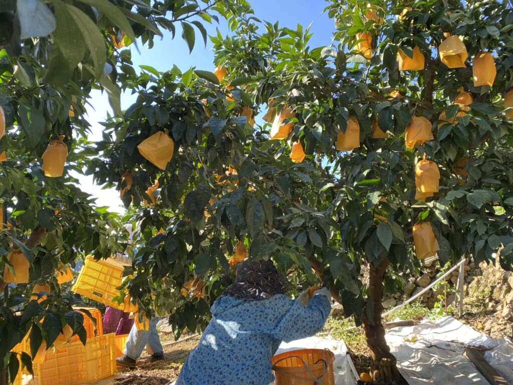 当園では、ハウス栽培と露地栽培のマドンナがあります。野菜と違って果樹ですので、需要があるからといってすぐに増やすこともできません。美味しい柑橘を作るためには、太陽の当たり方も重要なので、木を切ることもあります。来年、その先につながるように育てています。