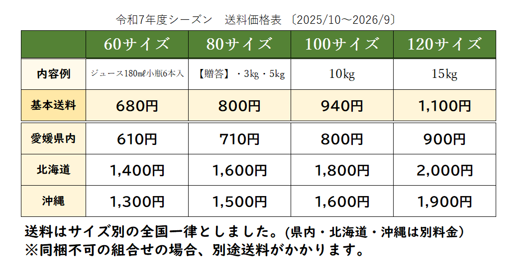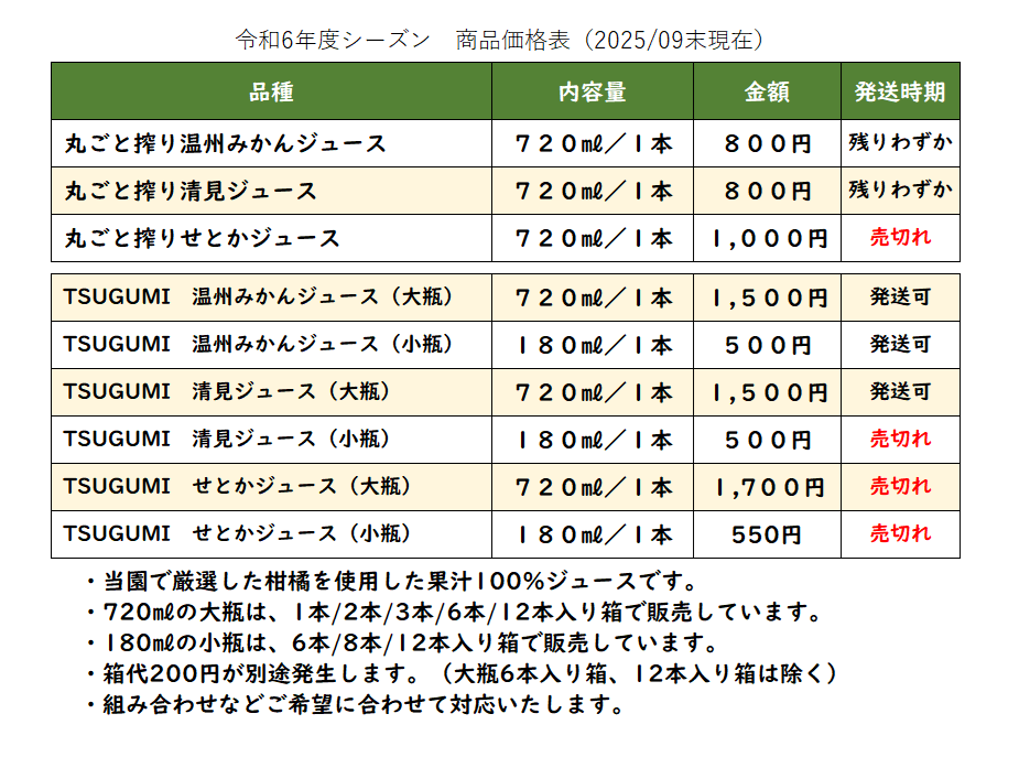 ジュースは令和6年度シーズンに搾汁した在庫を表示中。