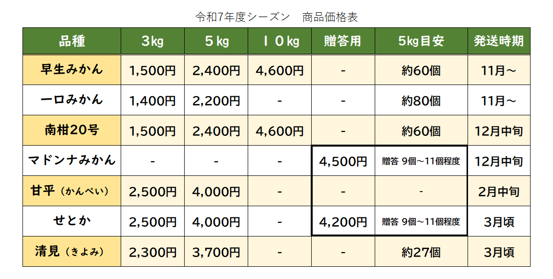 今シーズン収穫したものは、温州みかん(12月)